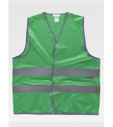 Gilet alta visibilità, chiusura con zip, bande rifrangenti.