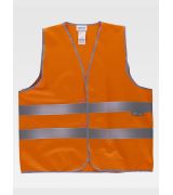 Gilet Alta visibilità. Apertura frontale regolabile chiusura con velcro. 1 portabadge sul petto lato sx. 2 bande riflettenti orizzontali in vita. A norma EN 20471.