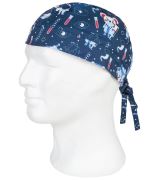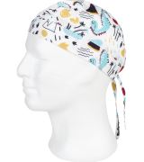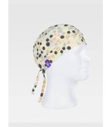 Bandana in tessuto elasticizzato stampato Regolabile con elastico bicolore e cordoncini nella nuca. N.B. ARTICOLO ORDINABILE SOLTANTO SU RICHIESTA, RICHIEDE UNA TEMPISTICA SUPERIORE A 7/10GG.