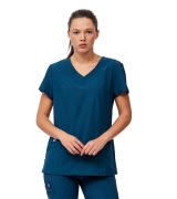 Casacca da donna collo a V Manica corta bicolore elasticizzata Spacchi sui fianchi. N.B. ARTICOLO ORDINABILE SOLTANTO SU RICHIESTA, RICHIEDE UNA TEMPISTICA SUPERIORE A 7/10GG.