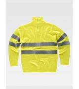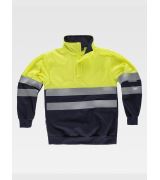 Felpa bicolore alta visibilità, collo alto, chiusura mezza zip, due bande rifrangenti sul petto e sulle maniche.