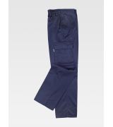 Pantalone alta resistenza, ginocchia e tasche in contrasto, chiusura con bottone in metallo e zip, tasche porta attrezzi.