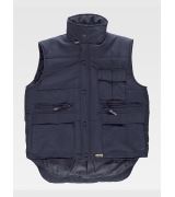 Gilet imbottito collo alto, giromanica regolabile ed elastico in vita chiusura con cerniera in nylon e bottoni automatici Due tasche sul petto per cellulare con patte in velcro. Due tasche interne con cerniera e due tasche laterali con patte in velcro. N.B. ARTICOLO ORDINABILE SOLTANTO SU RICHIESTA, RICHIEDE UNA TEMPISTICA SUPERIORE A 7/10GG.