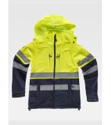 Giacca Workshell in Poliestere alta visibilità combinata con bande riflettenti Collo alto e cappuccio staccabile con cordino regolabile Due tasche laterali interne con cerniera in nylon Una tasca sul petto e una nella manica chiusa con cerniera Tessuto interno ad alta capacità termica molto morbido, con fodera frontale in rete Certificazione: EN ISO 20471:2013 CLASSE 2 Certificazione: EN 14058:2004 CLASSE 1. N.B. ARTICOLO ORDINABILE SOLTANTO SU RICHIESTA, RICHIEDE UNA TEMPISTICA SUPERIORE A 7/10GG.