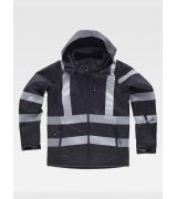 SOFTSHELL CON CAPPUCCIO ALTA VISIBILITA E BANDE RIFRANGENTI DISCONTINUE