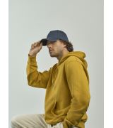 Cappello 6 pannelli in cotone organico riciclato Occhielli in metallo Pannello frontale non strutturato Visiera pre-curvata mid visor Chiusura con fibbia Lavato in capo. N.B. ARTICOLO ORDINABILE SOLTANTO SU RICHIESTA, RICHIEDE UNA TEMPISTICA SUPERIORE A 7/10GG.