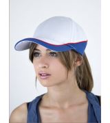 5 pannelli piping tricolore occhielli ricamati pannello frontale rinforzato visiera pre-curvata chiusura in velcro 6 cuciture su visiera. N.B. ARTICOLO ORDINABILE SOLTANTO SU RICHIESTA, RICHIEDE UNA TEMPISTICA SUPERIORE A 7/10GG.