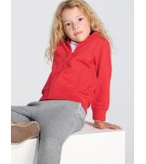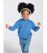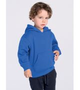 Felpa bambino/a con cappuccio, garzata. Tascone a marsupio. Polsini e girovita in costina Lycra 1x1.