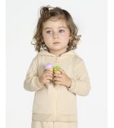 Felpa baby con cappuccio e zip intera in tessuto French Terry, sgarzata. Costina 2x1 con lycra su polsini e girovita.