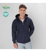 Felpa taglia adulto con cappuccio e chiusura a zip Keya SWZ280. In materiale misto cotone/poliestere da 280 g/m2. Con coulisse in tinta e 2 tasche frontali.