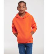 Felpa bambino/a con cappuccio, garzata. Tascone a marsupio. Polsini e girovita in costina Lycra 1x1.