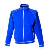 Felpa con chiusura centrale con cerniera, parasudore interno al collo, maniche raglan di colore a contrasto profilate con coda di topo bianca. Polsi, collo e fascia in girovita in maglia elastica, due tasche inferiori a filetto, scudetto tricolore applicato su manica destra. Con garzatura.