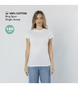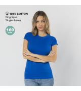 Maglietta da donna. Realizzata in maglia liscia con 100% cotone e stile Single Jersey da 160g/m². Tocco morbido e taglio moderno, con cuciture laterali. Girocollo stretto in costina 1x1. Cuciture doppie su orlo e maniche per una maggiore durata e resistenza all'uso intensivo. Etichetta facilmente rimovibile.
