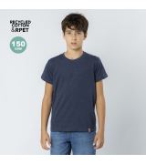 T-shirt da bambino realizzata in materiale di cotone riciclato al 60% in combinazione con tessuto RPET, Single Jersey da 150 g/m2. Etichetta facilmente rimovibile. Con logo riciclato sull'etichetta.