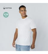 T-shirt a manica corta unisex realizzata in cotone a maglia liscia di 170 g/m2. Con colletto rotondo a 4 strati in costina 1x1. Include cuciture laterali da spalla a spalla.