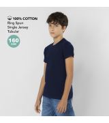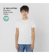Maglietta per bambino realizzata in maglia liscia con morbido 100% cotone da 160g/m². Design tubolare senza cuciture laterali e girocollo.