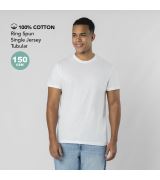 T-shirt adulto a manica corta, realizzata in morbido cotone liscio 100% 150 g/m². Realizzata in tessuto tubolare. Scollo rotondo in costina 1x1 con cuciture tono su tono.