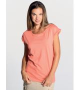 T-shirt donna manica corta. Girocollo ampio e maniche arrotolate. Etichetta rimovibile. 100% cotone Jersey, elasticità superiore al tessuto stretch, leggero e morbido, si modella sulla forma del proprio corpo risultando anche assorbente e soprattutto facile da lavare.