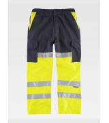 Pantalone multitasche bicolore certificato alta visibilità con elastico in vita. Tre bande riflettenti sulle gambe. Vestibilità regolare. N.B. ARTICOLO ORDINABILE SOLTANTO SU RICHIESTA, RICHIEDE UNA TEMPISTICA SUPERIORE A 7/10GG.