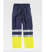 Pantalone bicolore multitasche alta visibilità fondo dritto con elastico in vita Due bande riflettenti sulle gambe Rinforzo sui glutei. N.B. ARTICOLO ORDINABILE SOLTANTO SU RICHIESTA, RICHIEDE UNA TEMPISTICA SUPERIORE A 7/10GG.
